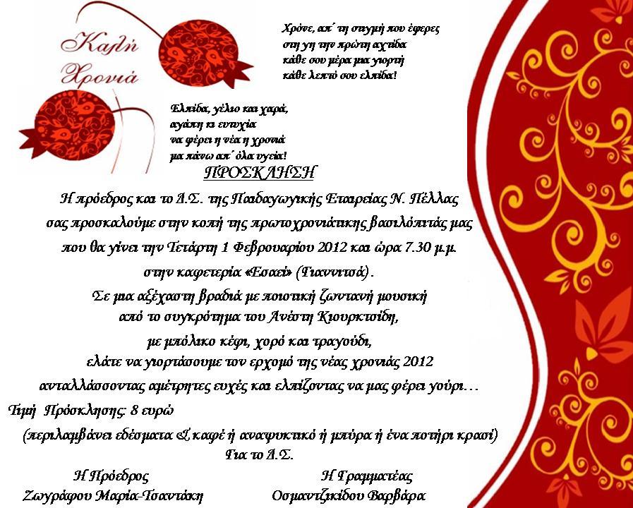 Κοπή Βασιλόπιτας από την Παιδαγωγική Εταιρία Ν.Πέλλας την Τετάρτη 01-02-2012